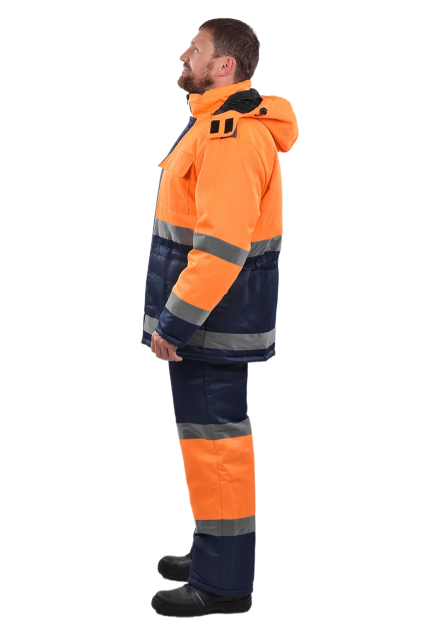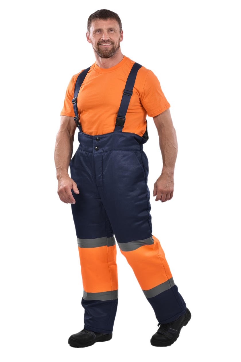 ➠ Брюки утеплённые с притачным утеплённым расширенным поясом, бретели регулируются застежкой фастекс. Два боковых кармана в бочках с наклонным входом. По линии колен выполнены наколенники из контрастной ткани с лентами СОП 50 мм вверху и внизу.