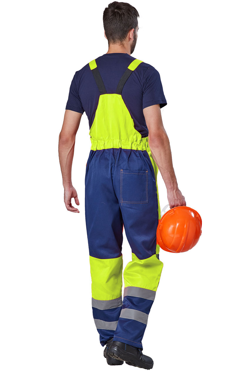 ➠ Полукомбинезон с притачной грудкой и спинкой, с застежкой гульфика на пуговицы, с застежкой в левом боковом шве на пуговицы. Два боковых накладных кармана. Наколенники. На правой задней половинке накладной кармана. На груде накладной карман с клапаном. Спинка стянута эластичной тесьмой. СОП 50 мм проходит вкруговую в два ряда по низу полукомбинезона.