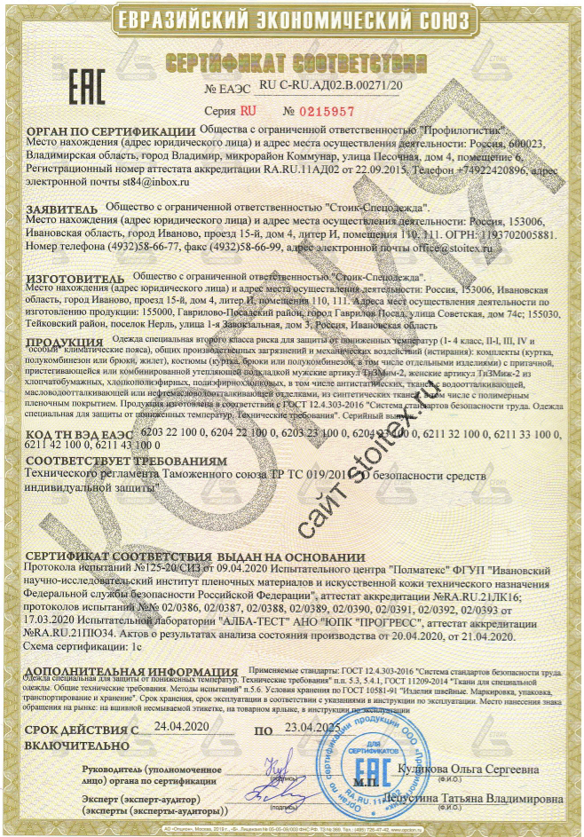 Сертификат соответствия №ЕАЭС 0215957